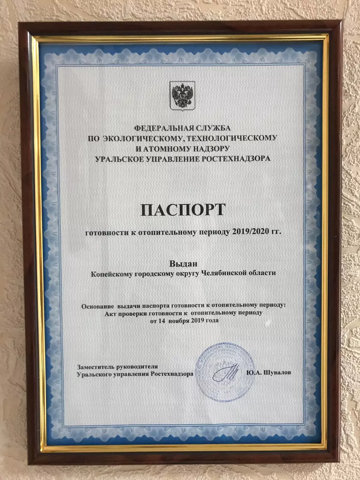 Как мы писали в сентябрьских новостях, у городского округа был ряд замечаний от Ростехнадзора. В начале октября в рамках проверки готовности городского хозяйства к отопительному периоду выяснилось, что все замечания были устранены. В итоге паспорт был получен 14 ноября после проведения всех необходимых процедур.