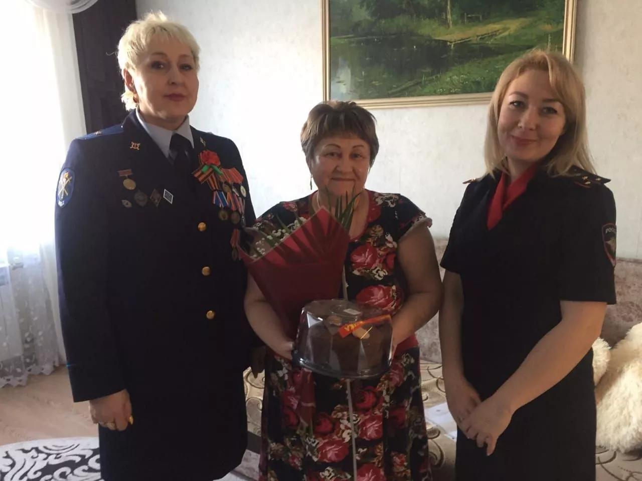 С тех пор стражи порядка постоянно навещают семьи погибших. Во время встречи председатель совета ветеранов Отдела МВД России по городу Копейску майор юстиции в отставке Рахима Свирь и специалист ОРЛС капитан внутренней службы Елена Комарова обсудили с Ольгой Викторовной и Марией Ивановной интересующие их вопросы.
