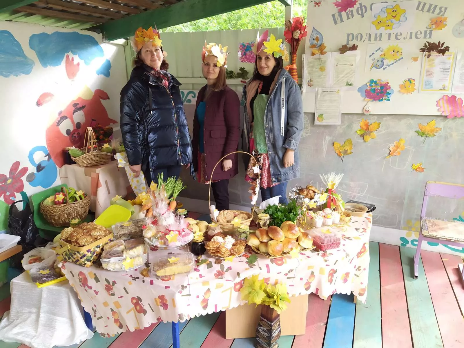 Подобное мероприятие в детском саду «Звоночек» проходит уже второй год. Родители воспитанников, а также педагоги детсада приносят выпечку собственного производства, зимние заготовки, фрукты и овощи со своего огорода, а также изготовленные своими руками украшения и изделия.