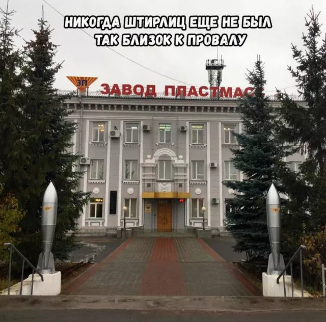 «Никогда Штирлиц еще не был так близко к провалу» - написали юмористы на фотографии главного входа проходной на завод «Пластмасс», который расположен на въезде в Копейск. Для россиян, кто не в курсе истории и названия предприятия, на фото наглядно продемонстрировано, чем на самом деле занимаются сотрудники завода – вход украшают две «ракеты».