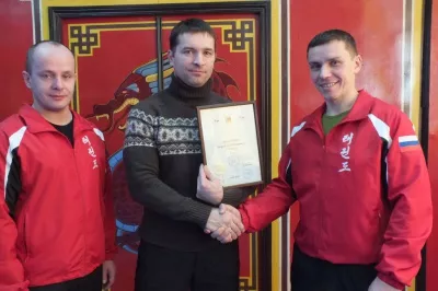Первый гып приравнивается к обладанию черным поясом с красной полосой либо коричневым, следующей после него мастерской ступенью является непосредственно черный пояс. Чтобы защитить титул, Андрею предстояло сдать сложный экзамен на владение техникой восточных единоборств, включающий в себя порядка 100 элементов. Сертификат квалификационного зачета спортсмену вручил начальник управления по физкультуре и спорту Кирилл Гарифуллин. Кирилл Ильфирович отметил высокие достижения Копейской федерации тхэквондо и заслуги тренера Александра Тавокина-Веккера в воспитании чемпионов, выразив надежду, что копейские борцы имеют все шансы попасть в Олимпийскую сборную страны.