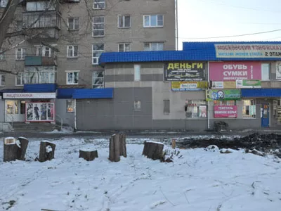 К дому пристроен центр розничной торговли «Вернисаж». По словам граждан, именно хозяин магазина стал инициатором спила порядка 15 деревьев. По их мнению, насаждения загораживали вид на магазин, и владелец обеспокоился, что это может мешать успешной торговле.