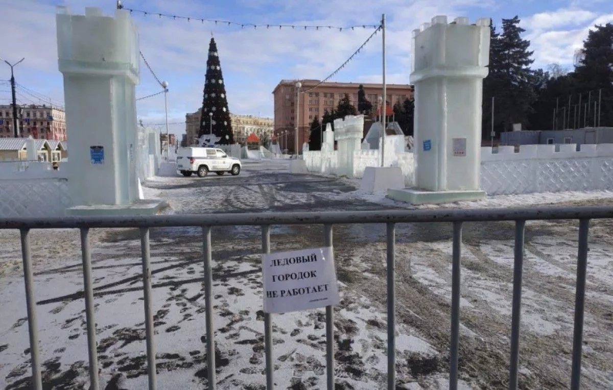 Ледовый городок на площади Революции закрыт до понедельника, 10-го февраля. Об этом сообщили накануне в челябинской мэрии. Из-за потепления почти до плюсовых температур, главную площадь закрыли уже в середине недели, теперь же запрет посещений продлен до понедельника. Скорее всего, на площади уберут ледяные скульптуры, потому что после потепления есть большой риск их обрушения. Кроме того, опасными признаны и ледяные горки.