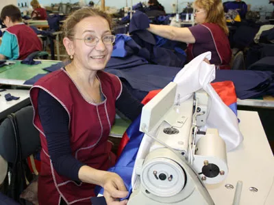 На Копейской швейной фабрике нередко шьют флаги, изготавливают элементы государственной символики – гербы, вымпелы, баннеры, спортинвентарь.