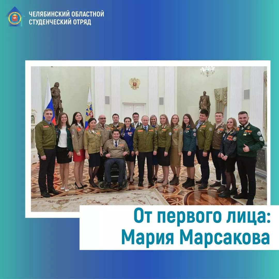 Об этом рассуждает командир студенческого отряда имени Уваровского Магнитогорского государственного технического университета Мария Марсакова. Общественница рассказала, что за год руководства штаба МГТУ она успела лично встретиться с Владимиром Путиным и поговорить. Марию очень вдохновило высказывание Президента о том, что он готов помогать развитию движения студенческих отрядов в России. Девушка отметила, что несмотря на трудности, которые проходит страна в связи с распространением коронавируса, поручения главы государства, которые были даны по итогу встречи со студентами, выполняются и сегодня.
