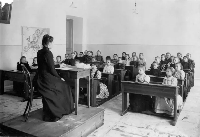 Если в начале XIX века в России сомневались, нужно ли учить народ грамоте, то после крестьянской реформы 1861 года в стране начался педагогический бум. Повсюду открывались народные школы, учителя и мыслители спорили о программах и методиках. При этом никакой специальной мебели в классах не было: дети занимались за столами, сидели на стульях. Правда, в старину существовали все же достаточно эргономичные, как мы говорим сегодня, приспособления для письменных работ: поставец, секретер, а еще — конторка. Они-то и стали прототипом парт.