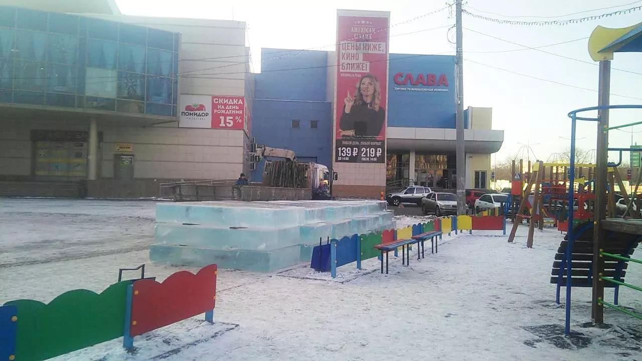 На площадь Трудовой Славы привезли лед