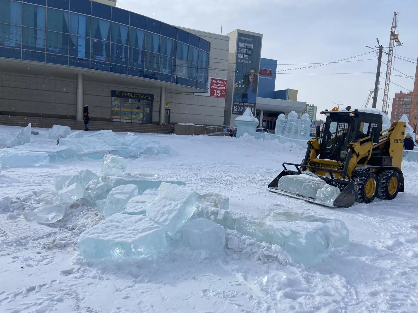 Прямо сейчас на площади Трудовой Славы идет демонтаж ледовых фигур.