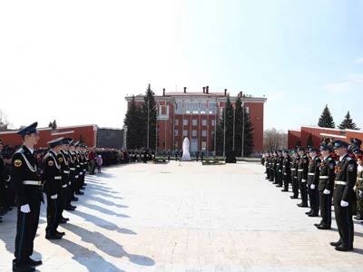 В церемонии открытия памятника на площади Дворца пионеров и школьников в Челябинске участвовали руководители силовых и правоохранительных ведомств региона, ветераны и кадеты.