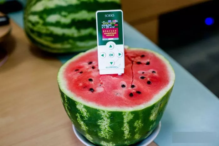 Эксперты проверили арбузы на рынках и супермаркетах областного центра. Тестер продемонстрировал превышение нормы в 4-6 раз. Такие арбузы есть небезопасно – норма для взрослого человека составляет всего 1 столовую ложку в сутки, а детей такими ягодами кормить категорически запрещается.