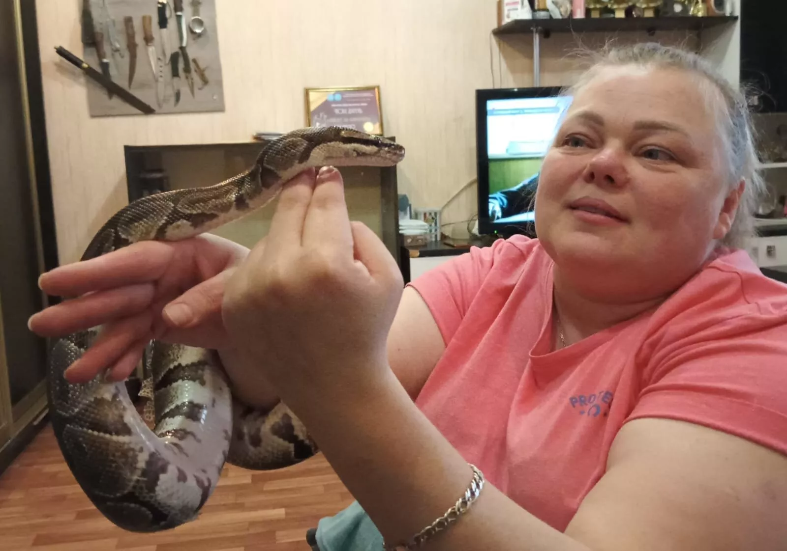 Любови Каркавиной Вася достался совершенно случайно. Друзьям года четыре назад родители на свадьбу подарили квартиру, в которой питон уже жил. Молодожены категорически были против иметь сразу жилье с «ребенком». Но и пристроить такую живность оказалось делом не простым. Любовь Валерьевна, хозяйка 8-летнего немецкого дога и американской бульдожки трёх лет отроду, неожиданно согласилась приютить питона. Собаки тоже его легко приняли, тем более что он почти безвылазно обитает в террариуме, где домиком ему служит обычная коробка из-под обуви 43 размера. «Немец» питона не замечает вообще, а вот мелкий старается при случае его цапнуть.