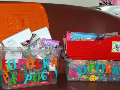 Процедуры, которые приходится переносить детям – страшные, болезненные, поэтому ребята кричат, плачут. И тогда врачи, показывая на коробку, говорят малышам, что если они чуть-чуть потерпят и не будут плакать, то получат одну из игрушек, хранящихся в «волшебном» ящике.