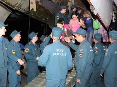 26 июля спецборт МЧС России доставил из Симферополя 100 переселенцев из Украины, которые бегут в Россию, спасаясь от гражданской войны.