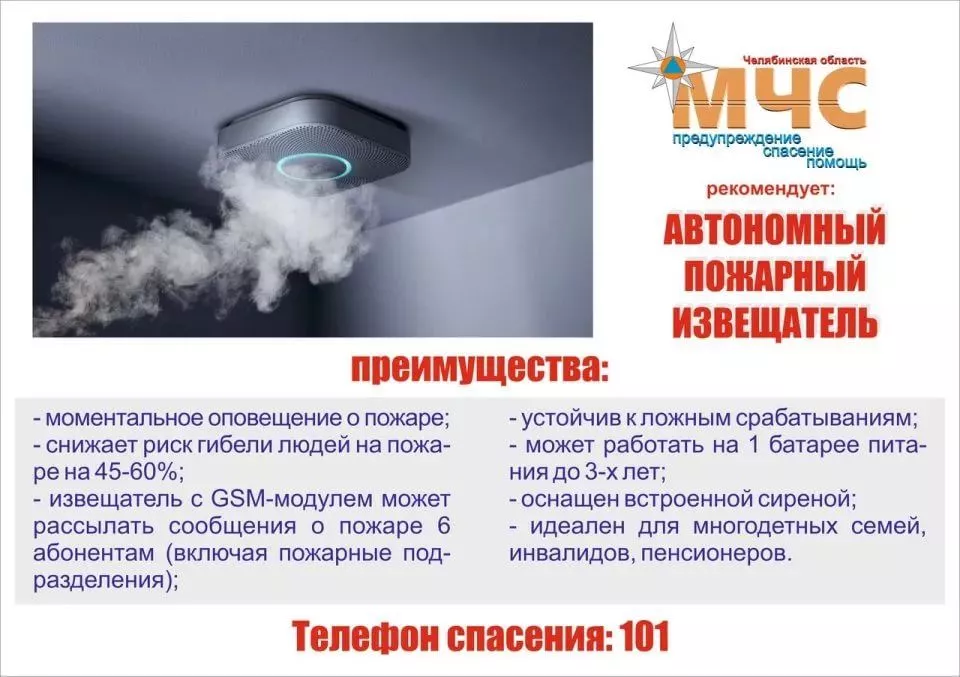 За 2 года в Челябинской области благодаря сработке пожарных извещателей были спасены 24 человека, среди которых 9 детей.