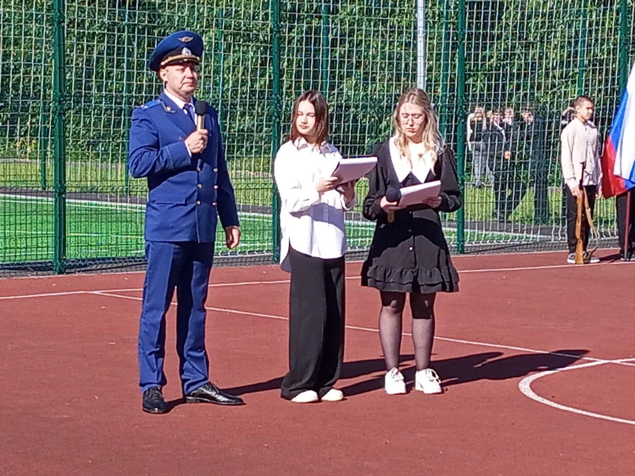 Во время торжественной линейки представители прокуратуры поздравили учеников с началом нового учебного года, пожелав им стремления к новым достижениям и настойчивости в учебе. Отдельные слова благодарности были сказаны учителям от сотрудников прокуратуры.