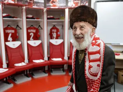 Воскресный футбольный матч московского «Спартака» против казанского «Рубина» посетил копейский долгожитель Отто Константинович Фишер.