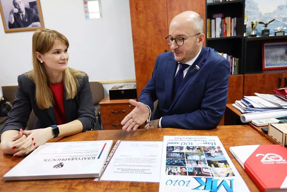 Сегодня, 16 января, сенатор от Челябинской области Олег Цепкин пришел в офис медиахолдинга «Гранада Пресс», чтобы вручить благодарность от председателя Совета Федерации Валентины Матвиенко.