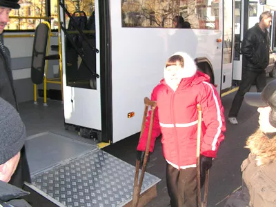 Приглашенные на мероприятие члены общества инвалидов опробовали новый транспорт. Галина Купричева, передвигающаяся при помощи костылей, усовершенствование оценила: «На ступеньки обычного автобуса я забраться не могу, а в этот смогла зайти самостоятельно».