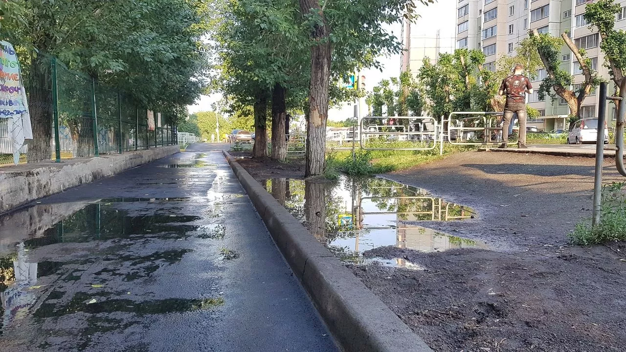 Территория около входа в школу № 9 на улице Калинина давно была проблемной - сначала родители школьников добивались там пешеходного перехода со светофором, потом - тротуара. Совсем недавно строители закончили работы на тротуаре, однако жители сразу начали подозревать, что уклон сделан неверно. Сильнейший ливень, который обрушился на город 7-го июля показал - жители были правы. На новом асфальте опять появились лужи. Копейчане сразу же написали об этом в городских пабликах.