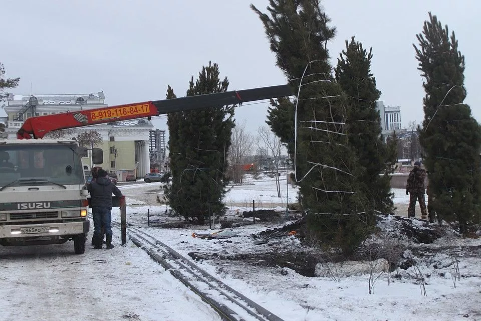Деревья высотой пять метров привезли из алтайского питомника.