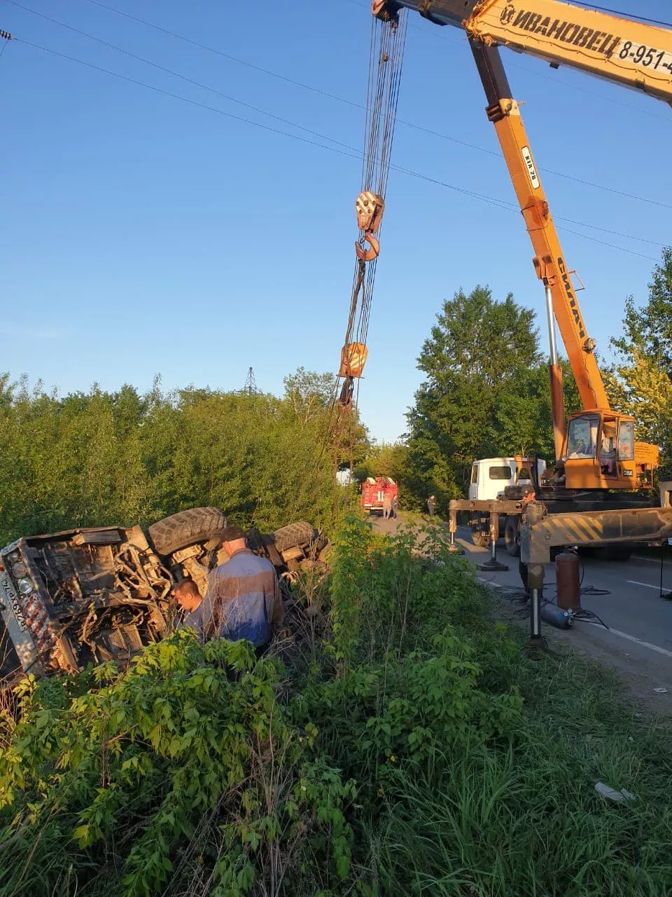 Сварщики трудятся изо всех сил, чтобы за следующие 2-3 часа завершить работу с трубой водовода, которая ранее была повреждена при падении автокрана.