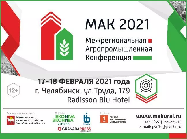 С 17 по 18 февраля 2021 года в Челябинске в отеле «RadissonBlu» состоится Межрегиональная Агропромышленная Конференция с международным участием – МАК2021(https://makural.ru/).