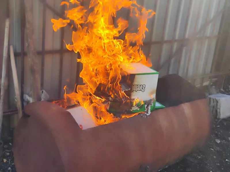 Полицейские отправили в огонь героин, марихуану и синтетические вещества.