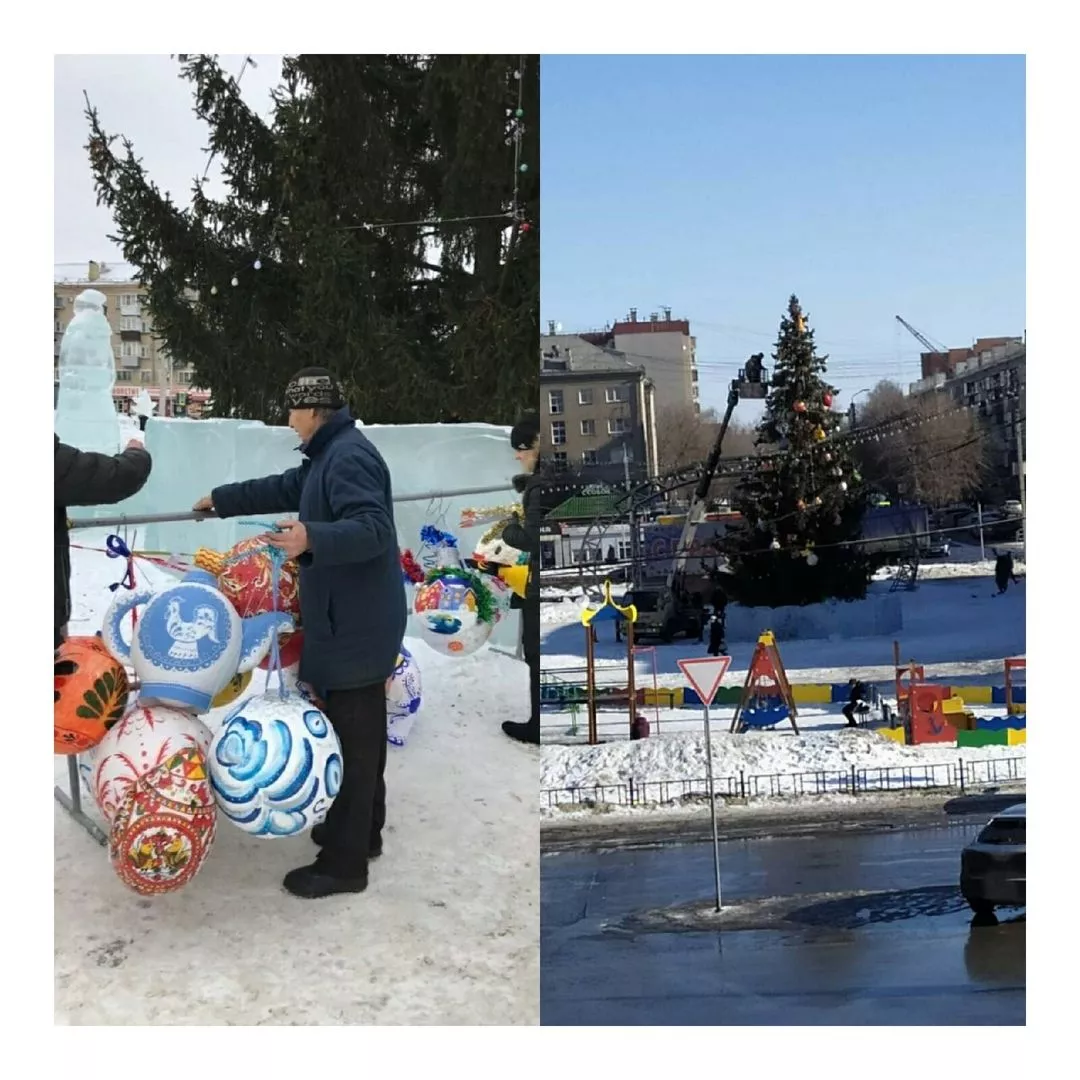 Сегодня, 21 февраля, на площади Трудовой Славы начался демонтаж главной городской елки. Прямо сейчас рабочие при помощи специальной техники с люлькой осуществляют уборку игрушек и украшений с огромного дерева.