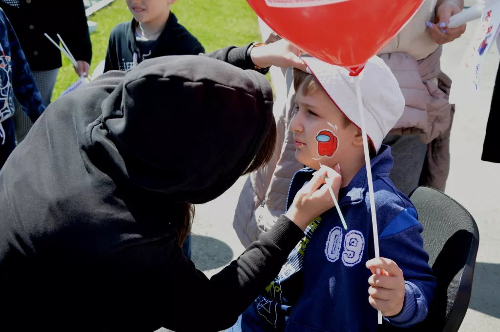 Самая большая площадка – конкурс рисунков на асфальте. Рядом десятки мольбертов, где можно было выразить свои эмоции красками на ватмане. Тема: «Лето, отдых и мы». «Движение Первых» привлекло желающих к сбору конструктора «Лего», изготовлению игрушек и солнышка из цветной бумаги. А ещё учили одевать общевойсковой защитный комплект на случай химического заражения. К специалистам аквагрима, как всегда, была длиннющая очередь. Сотрудники полиции провели обучение вождению велосипедов в условиях города. А ещё были интерактивные площадки и много, много другого. Развлекали детвору сразу пять ростовых кукол и танцевальные хореографические коллективы «Юнона» и «Звёздочка».