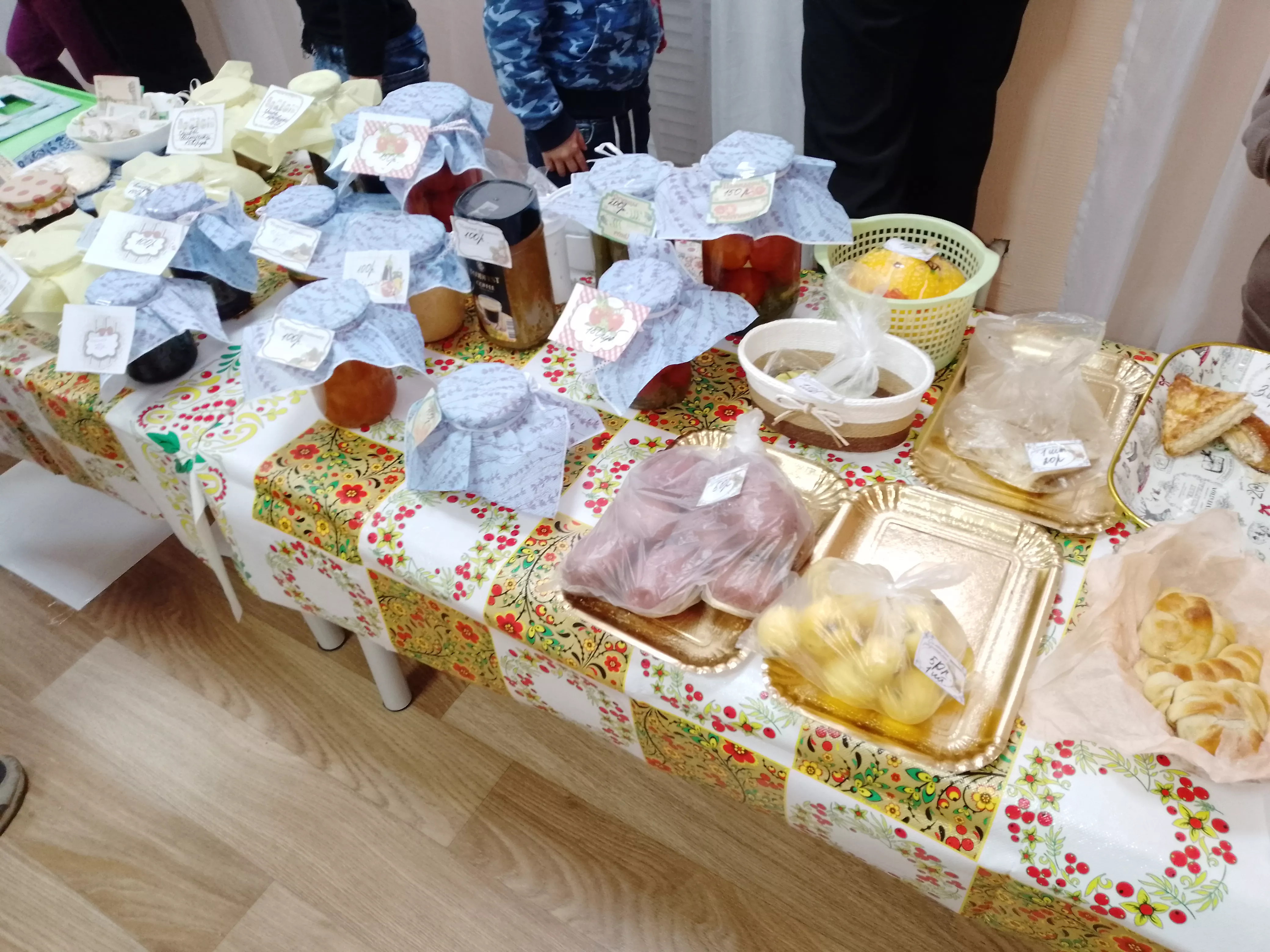 На ярмарке представлены самые разные товары - домашние заготовки, сезонные овощи, выпечка, украшения и т.д. Сотрудники дошкольного отделения ежегодно угощают посетителей ярмарки свежеиспечеными блинами и горячим чаем.