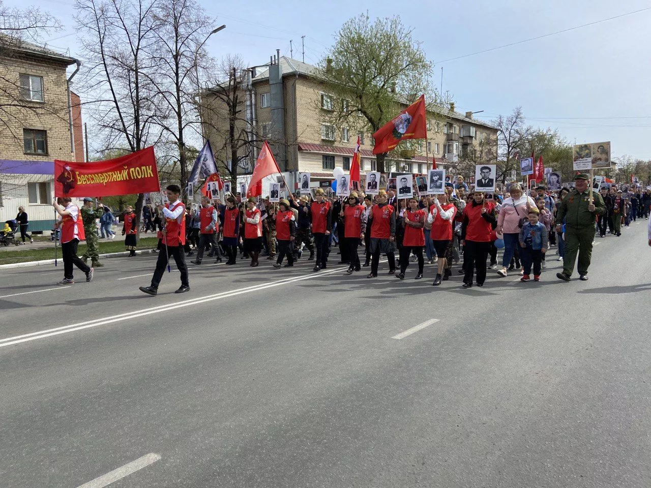 Впервые с 2019 года по улицам города идет колонна с фотографиями своих родных, участвовавших в Великой Отечественной войне или трудившихся в тылу в годы войны.