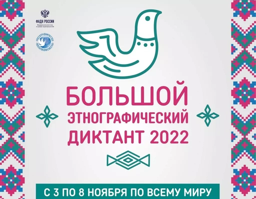 В период с 03 по 08 ноября 2022 года проводится Международная акция «Большой этнографический диктант», в которой могут принять участие все желающие.