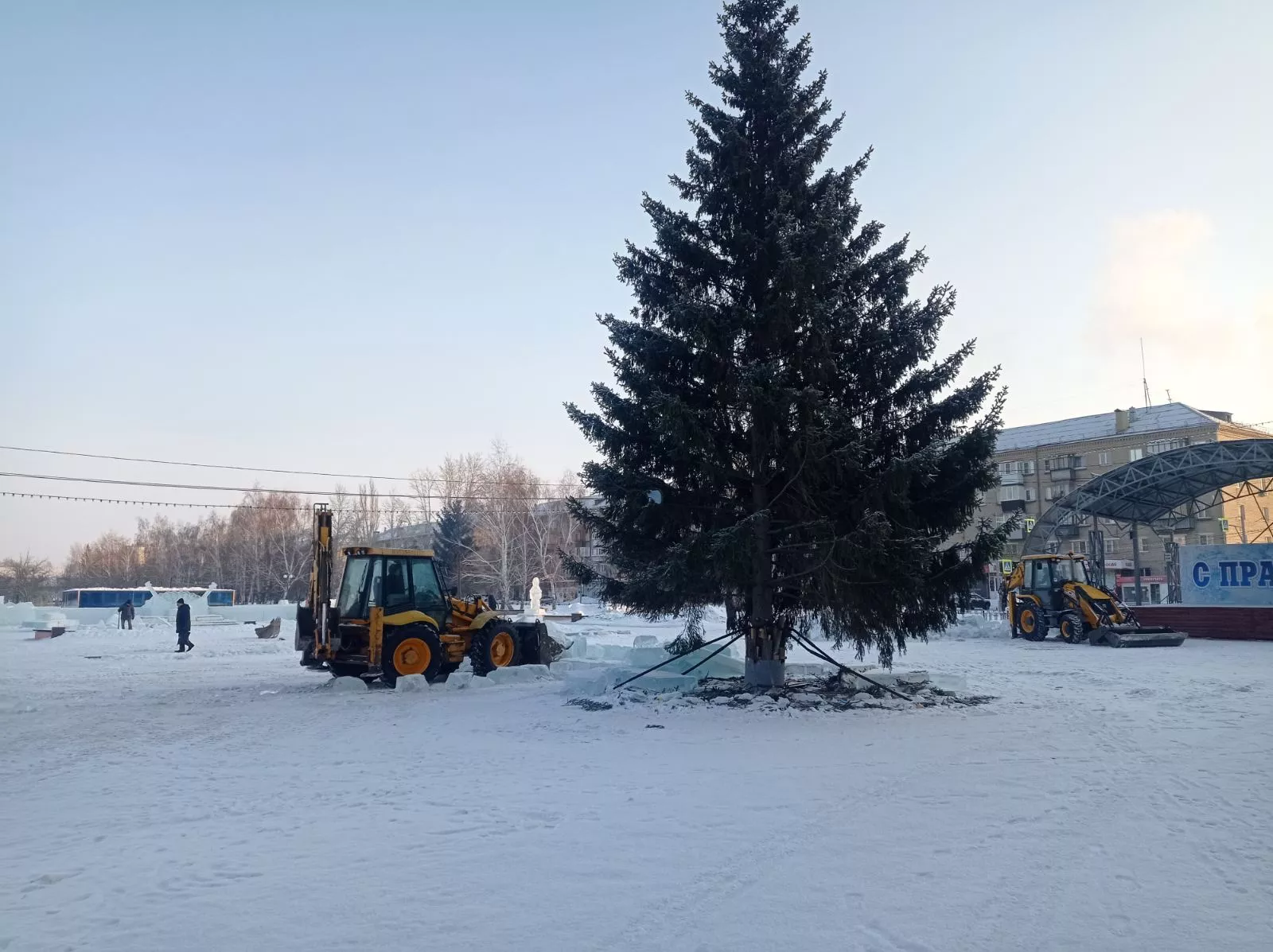 В Копейске на центральной площади у ТРК Слава за минувшие выходные разобрали ледовый городок. Об этом сообщили местные жители.