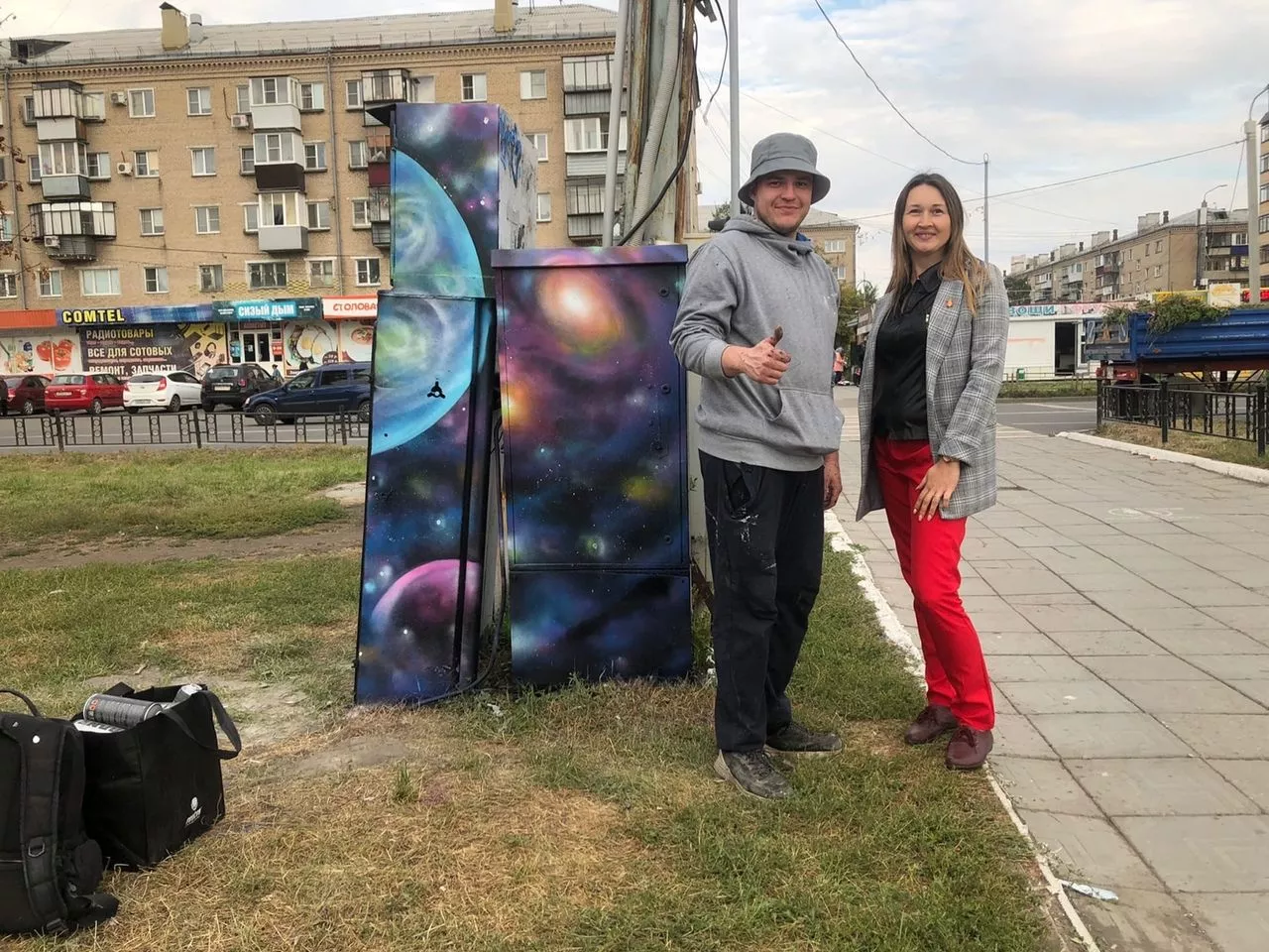 На центральной площади города, площади Трудовой Славы, появились два граффити. «Холстами» для уличного искусства стали две трансформаторные будки. Теперь вместо двух унылых прямоугольников прохожие видят художественные произведения искусства.