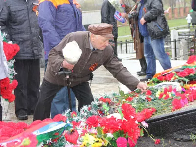 После праздничного парада в честь Дня Победы, ветераны, а также участники и зрители шествия на автобусах отправились возложить цветы и венки у Вечного огня и у бюстов Героев Советского Союза в сквере Павших Героев.