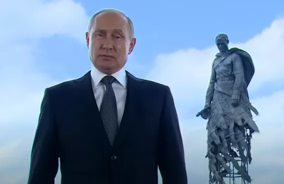 Видео было записано на фоне Ржевского мемориала советскому солдату.