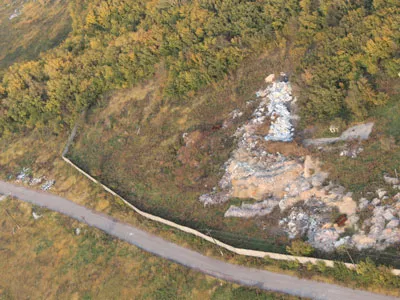 Итак, мотор заведен, за моей спиной крутится огромный пропеллер, из-за шума двигателя ничего не слышно. Мы трогаемся с места, и через несколько метров колеса мотопараплана аккуратно отрываются от земли. Мы набираем высоту. Направляемся в сторону бывшей шахты «Капитальной». Некогда ведущее угольное предприятие Челябинской области представляет из себя жалкое зрелище – остовы копров, полуразрушенное здание шахтоуправления, развороченные на металлолом элементы инфраструктуры. Мы движемся на юг, плавно набирая высоту. Дорога, огибающая бажовскую мебельную фабрику, сплошь завалена мешками строительного мусора. Невооруженным взглядом видно, что кто-то неоднократно самосвалами вываливал здесь ненужный стройматериал.