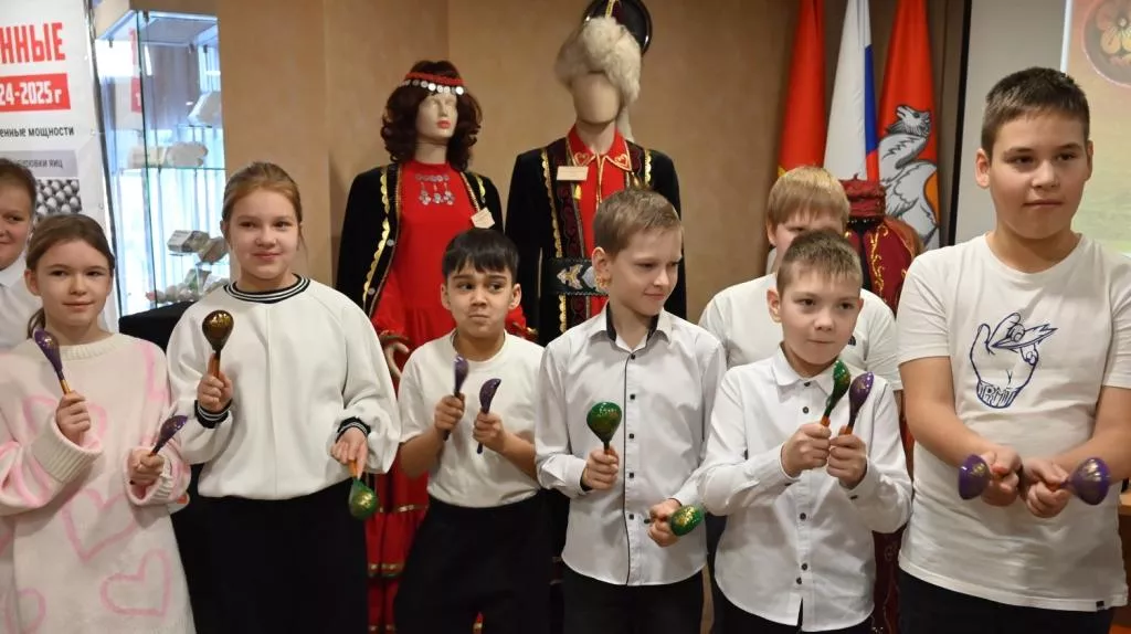 Кульминацией встречи школьников с сотрудниками музея стало коллективное исполнение русской народной песни. Причём каждому ребёнку выдали простые инструменты – ложки, бубны, трещотки. Очень задорная импровизация «Калинки-малинки» получилась. Дети были в восторге.