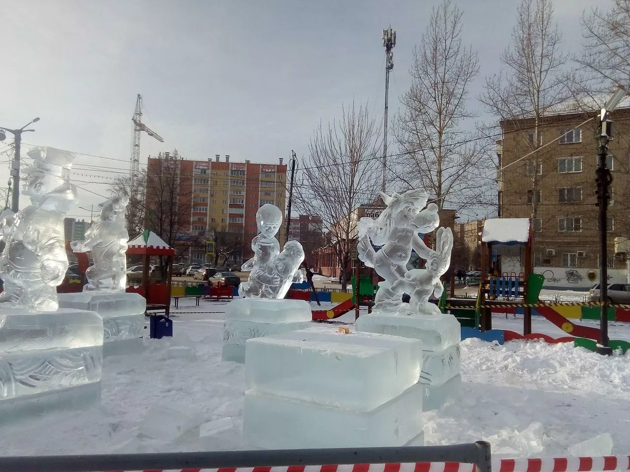 Напомним, в этом году строительство ледового городка в Копейске дало много информационных поводов: сначала все удивлялись, какие красивые фигуры вырезали мастера, затем - большому количеству Дедов Морозов и Снегурочек, "наштампованных" на площади.