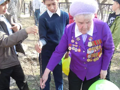 «Изюминкой» празднования 66-ой годовщины Победы стала высадка участниками войны (их в поселке РМЗ живет 10 человек) и тружениками тыла яблоневой аллеи в школьном дворе.