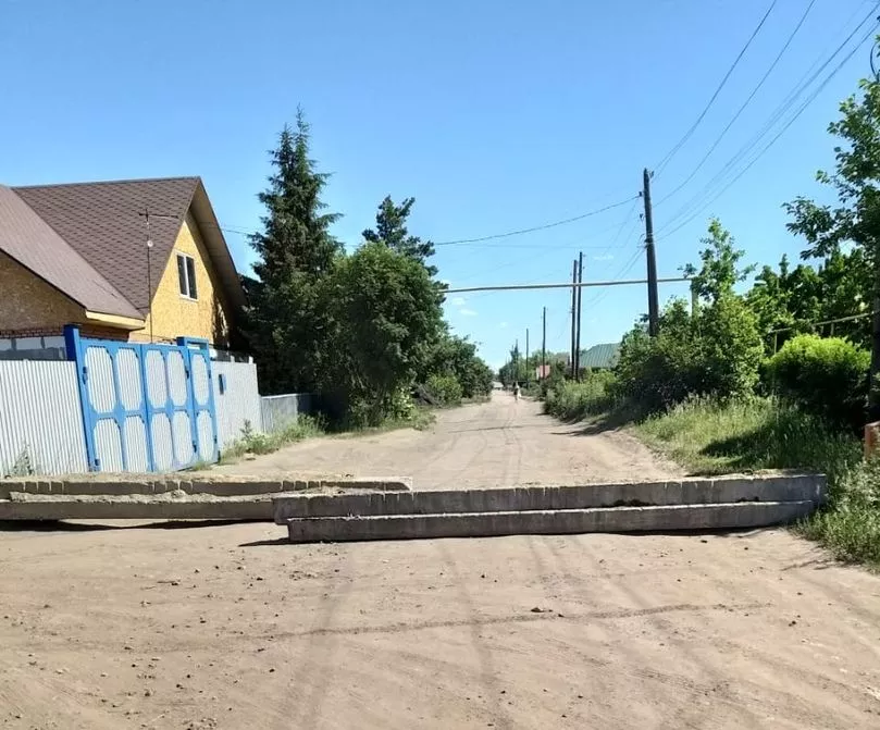 Жители Железнодорожного самовольно перекрыли проезд бетонными балками