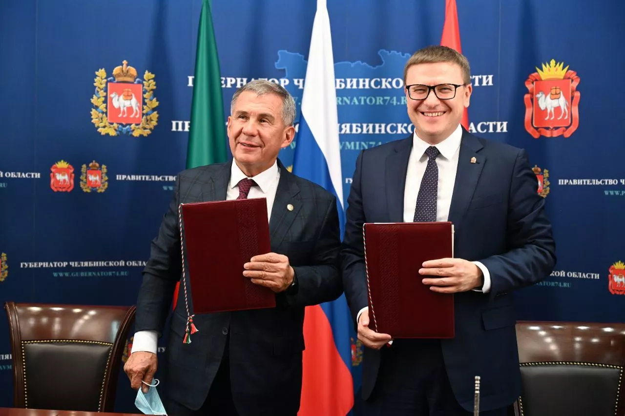 Сегодня в ходе рабочего визита в Челябинск Президента Республики Татарстан Рустама Минниханова было заключено соглашение о сотрудничестве между ним и губернатором региона Алексеем Текслером.