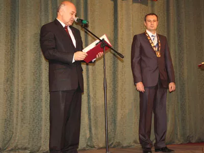 Волнующий момент: Вячеслав Викторович приносит присягу честно и добросовестно исполнять свои обязанности, прилагать все усилия для экономического и социального развития города, улучшения жизни копейчан.