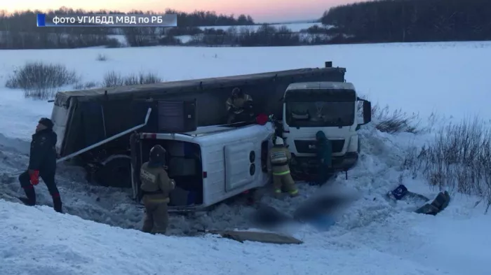 В маршрутном такси находилось 13 человек, включая водителя, (маршрут Уфа-Усть-Катав) в грузовом автомобиле МАN находился 1 водитель.