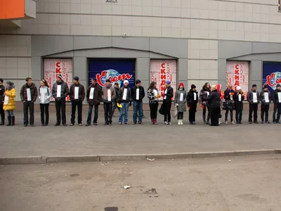 Каждому участнику флэшмоба нужно было прийти в 15 часов субботнего дня на площадь с маленькой свечой и белой бумажной полосой. К сожалению, зажечь большую «свечу памяти» не позволили погодные условия — ветер задувал робкие огоньки маленьких свечей. Но зато построить длинный «пешеходный переход» не помешал никто: всего в акции приняли участие 200 человек, «человеческой цепочки» с белыми полосками на груди хватило на всю протяженность ТК «Слава». Участники флэшмоба простояли в общей «зебре» 10 минут, затем разошлись в разные стороны – раздать копейским автолюбителям памятки с печальной статистикой о жертвах ДТП.