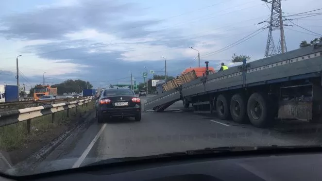 Автомобили, которые двигались рядом, оперативно среагировали на препятствие, однако маневры оказались затруднены, и на путепроводе образовалась приличная пробка.