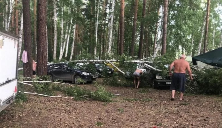 Пронесшийся на Увильдах ураган повалил деревья на машины отдыхающих