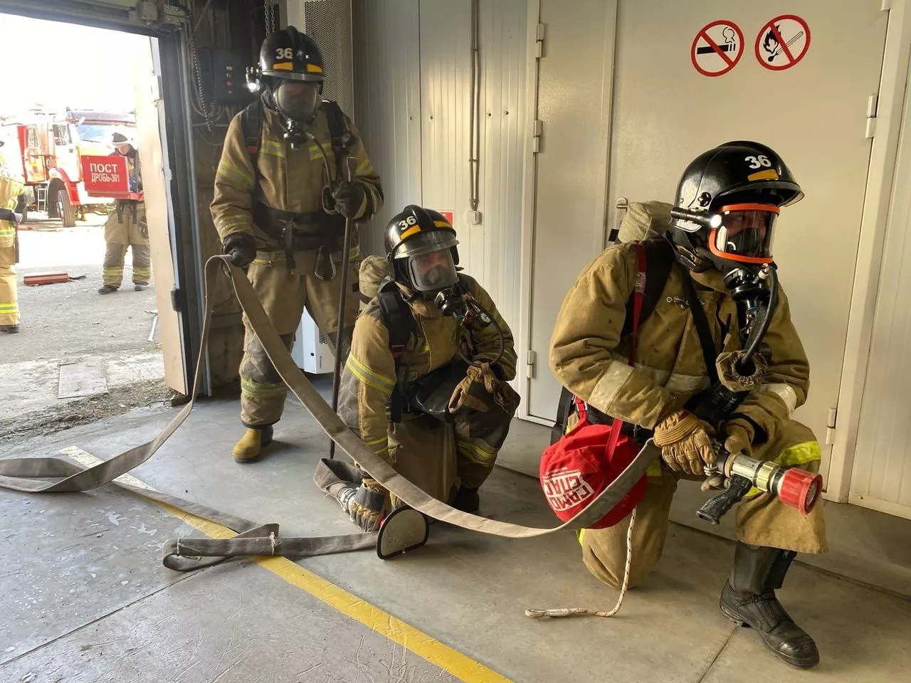 Согласно легенде учений, до прибытия пожарных эвакуировались 50 сотрудников цеха, а еще 10 продолжали оставаться внутри задымленного помещения. Из-за распространения пожара возникла угроза обрушения кровли цеха.