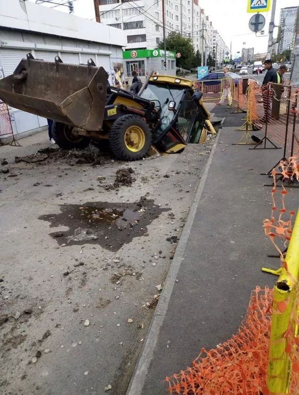 Тем временем в комментариях уже шутят, что трактор отправился в подземелье на строительство метрополитена. Информации о том, как себя чувствует водитель тяжелой техники, пока нет.