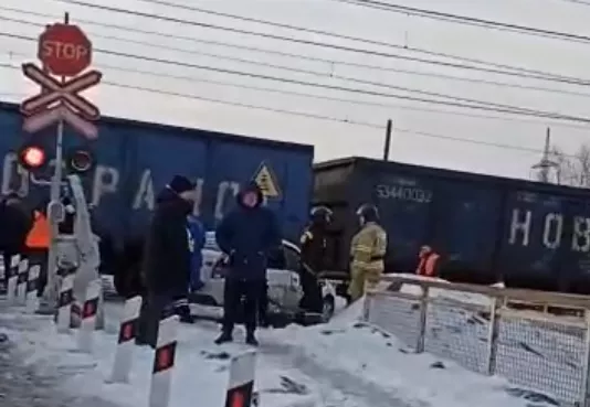 Утром 18 марта грузовой состав врезался в легковушку, пересекающую железнодорожные пути.